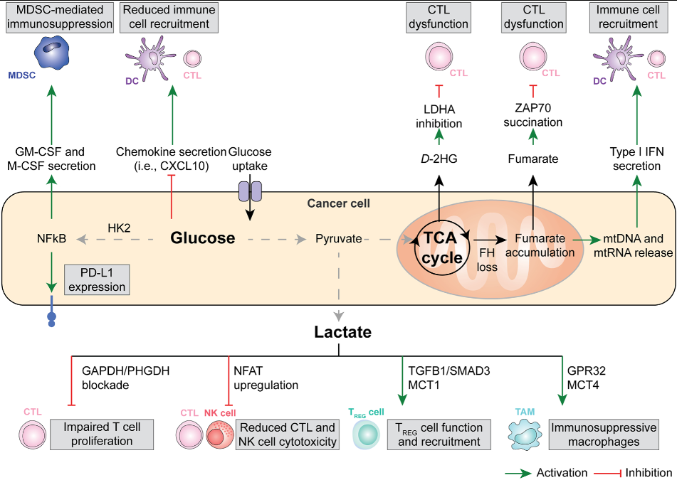 图 1:Glucose, lactate, and intermediate metabolism in anticancer immunity