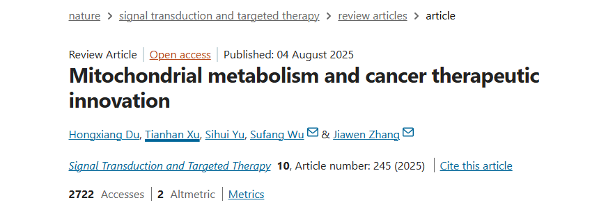 Du H, Xu T, Yu S, Wu S, Zhang J. Mitochondrial metabolism and cancer therapeutic innovation. Signal Transduct Target Ther. 2025 Aug 4;10(1):245.